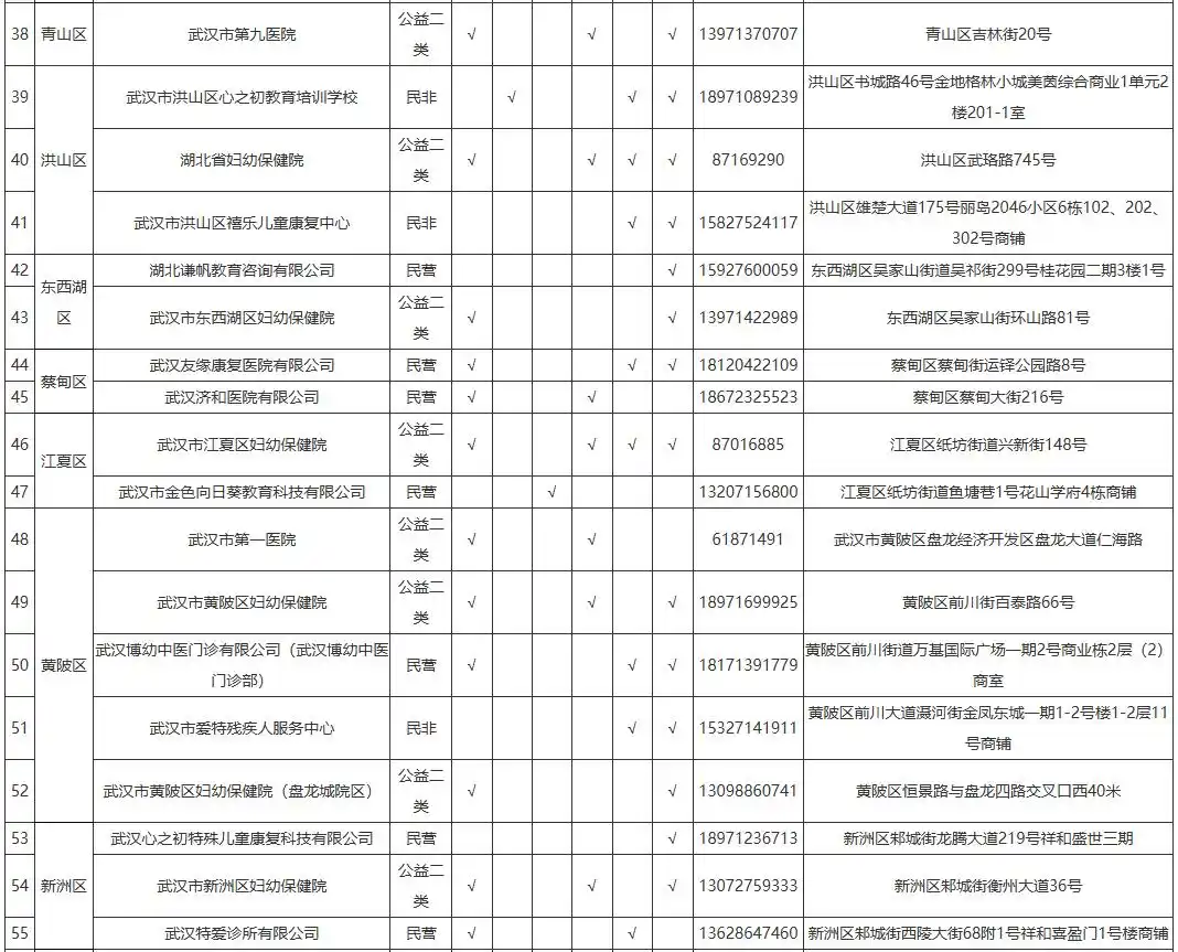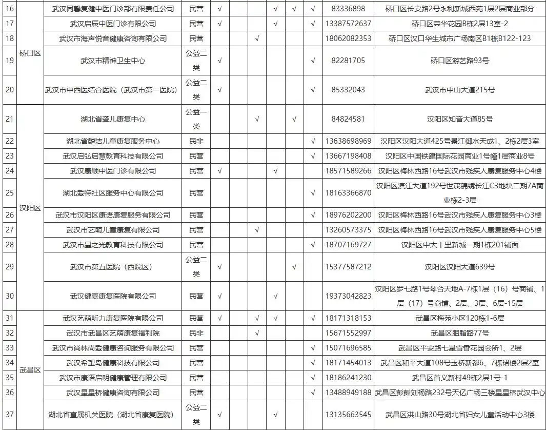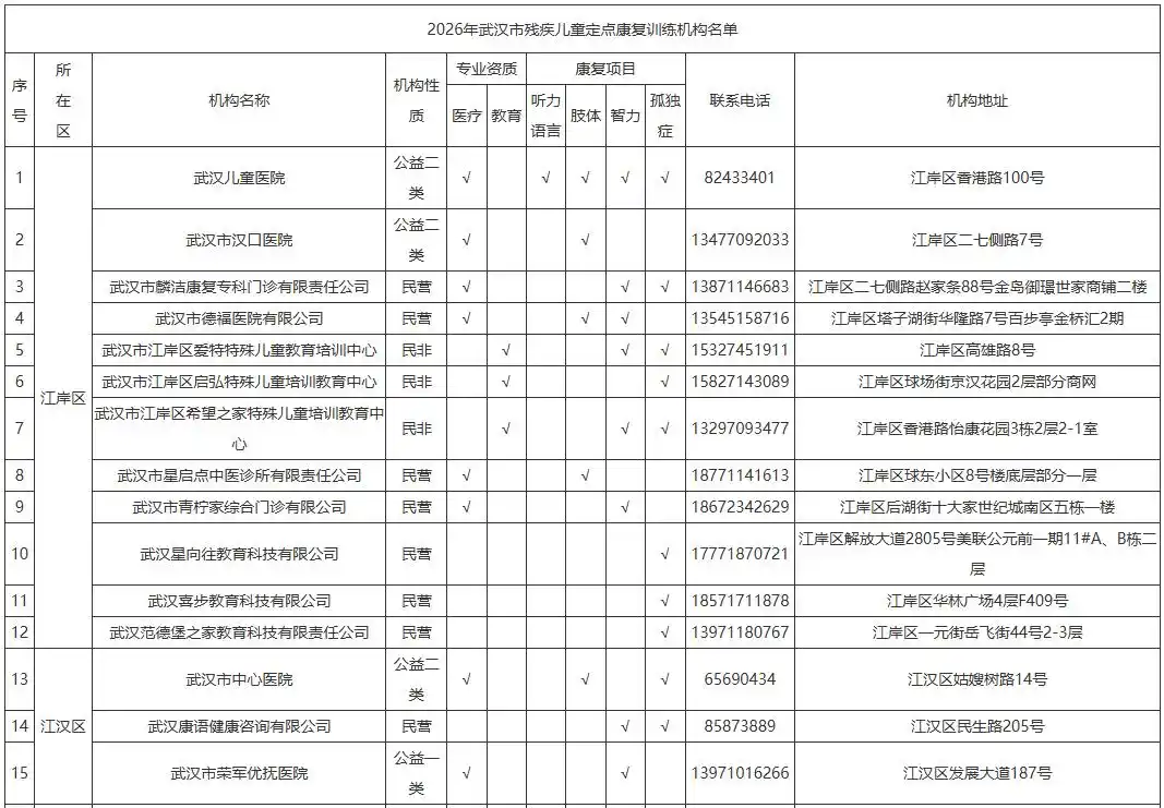 2026年武汉市残疾儿童定点康复训练机构名单公布